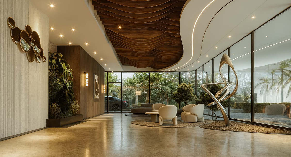 Beyond the magnificent main halls, the Convention Centre offers a diverse array of versatile spaces, each imbued with a distinct modern aesthetic. Elegant lounges with organic, curved seating and unique ceiling features invite comfortable social interaction, while the striking reception area, with its natural stone elements and flowing lines, provides a warm and impressive welcome. State-of-the-art meeting rooms and intimate gathering areas are seamlessly integrated, all benefiting from abundant natural light and a thoughtful connection to the surrounding environment. This project stands as a beacon of modern design, offering adaptable and aesthetically stunning venues that promise to make every event, from grand celebrations to professional conferences, truly exceptional.