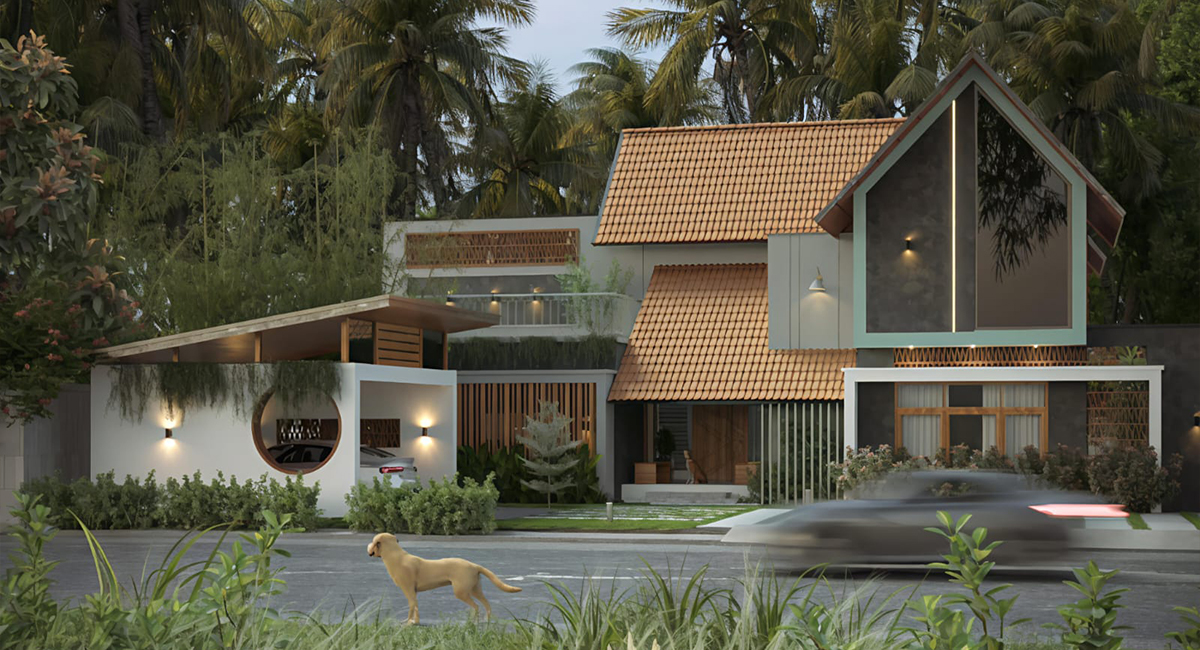 Nestled in the lush, verdant setting of Thodupuzha, this 3800 square foot tropical-style residence blurs the boundaries between architecture and nature, creating a harmonious sanctuary that celebrates the region's natural beauty. The exterior embraces a refreshing green palette that allows the home to nestle seamlessly into its surroundings, while thoughtful landscaping and climbing vegetation soften architectural lines and create a living, breathing façade that evolves with the seasons. Step inside, and you're greeted by vibrant interiors that echo the energy and richness of the tropical landscape—bold colors, natural textures, and an abundance of natural light work together to create spaces that feel alive and energizing. Large openings and strategic placement of indoor plants ensure that nature's essence permeates every corner of the home, from intimate private spaces to generous communal areas. This residence is a testament to tropical modernism done right, where architectural design doesn't compete with nature but rather works in concert with it, resulting in a home that is both visually striking and deeply rooted in its environmental context.