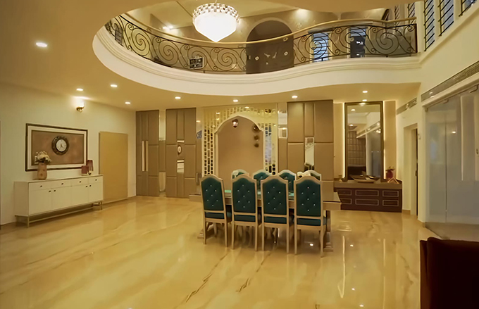 Commanding a prestigious presence in Ernakulam, this magnificent 10,000 square foot Mediterranean-style residence transports you to the sun-drenched shores of the Mediterranean coast, where centuries-old architectural traditions meet contemporary luxury living. The iconic terracotta roof tiles crown the home with warm, earthy tones that evoke the romance of European villas, while their gentle undulations create a distinctive silhouette against the sky. Graceful arches—a hallmark of Mediterranean architecture—appear throughout the design, framing doorways, windows, and covered walkways with their elegant curves that soften the structure's substantial scale and create inviting transitions between spaces. Classical detailing is evident in every corner, from ornamental cornices and decorative columns to wrought iron accents and hand-finished stucco walls that showcase traditional craftsmanship. The generous square footage allows for palatial rooms with soaring ceilings, multiple entertaining areas, and private retreats that offer both grandeur and intimacy. Courtyards and terraces extend the living space outdoors, creating sun-dappled sanctuaries perfect for the Mediterranean lifestyle of leisurely gatherings and al fresco dining. This residence is more than a home—it's an architectural journey that celebrates the timeless beauty, refined elegance, and sophisticated charm of Mediterranean design at its finest.